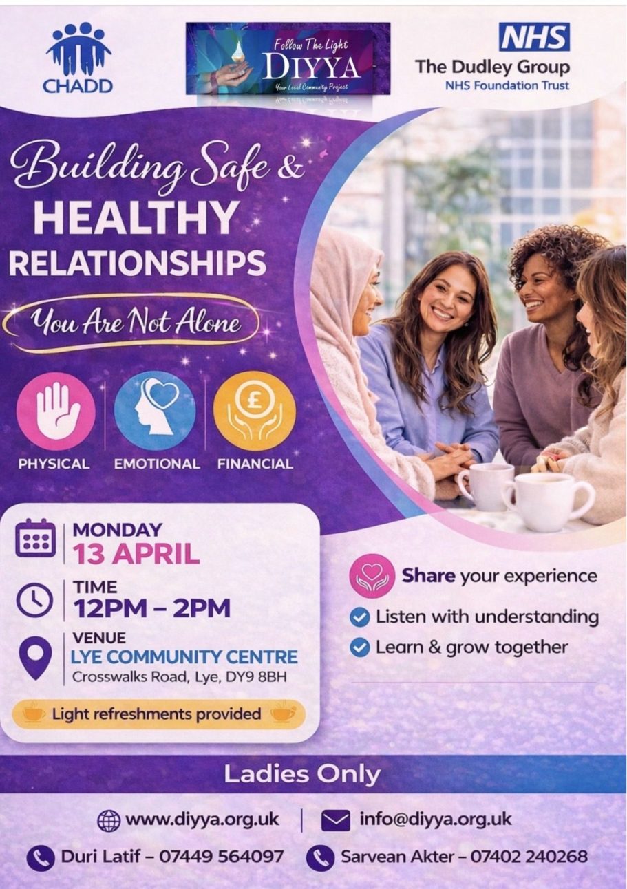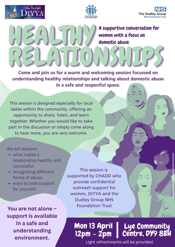 We are pleased to be working in partnership with NHS Dudley Group and CHADD to deliver a supportive session focused on healthy relationships. 🤝
